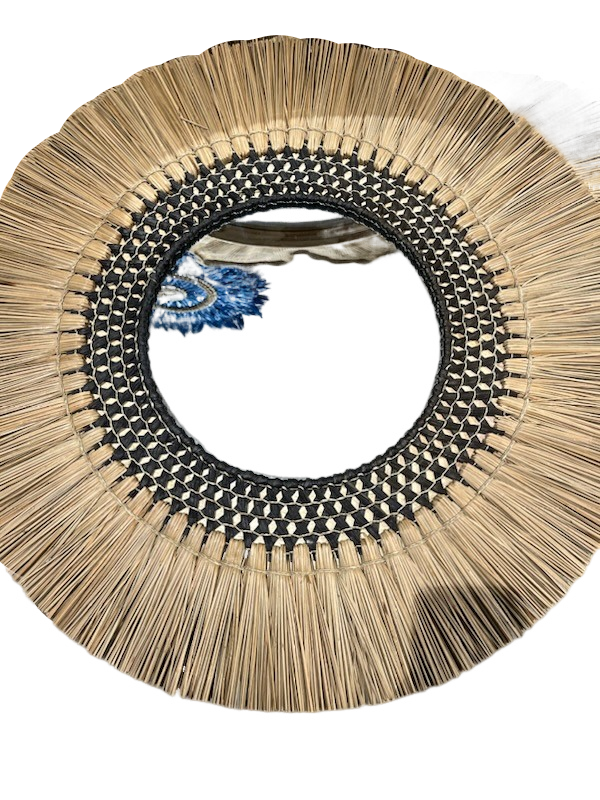 Miroir Balinais en "seagrass" ou herbier marin, couleur naturel. Fabriqué entièrement à la main.