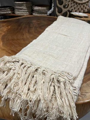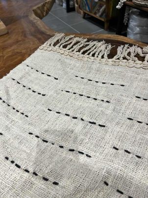 Ajoutez une touche de confort et d'élégance à votre intérieur avec notre plaid en lin et coquillage, soigneusement fabriqué à Bali. Ce plaid unique combine la douceur du lin à des éléments décoratifs en coquillage, créant une pièce à la fois chic et accueillante.