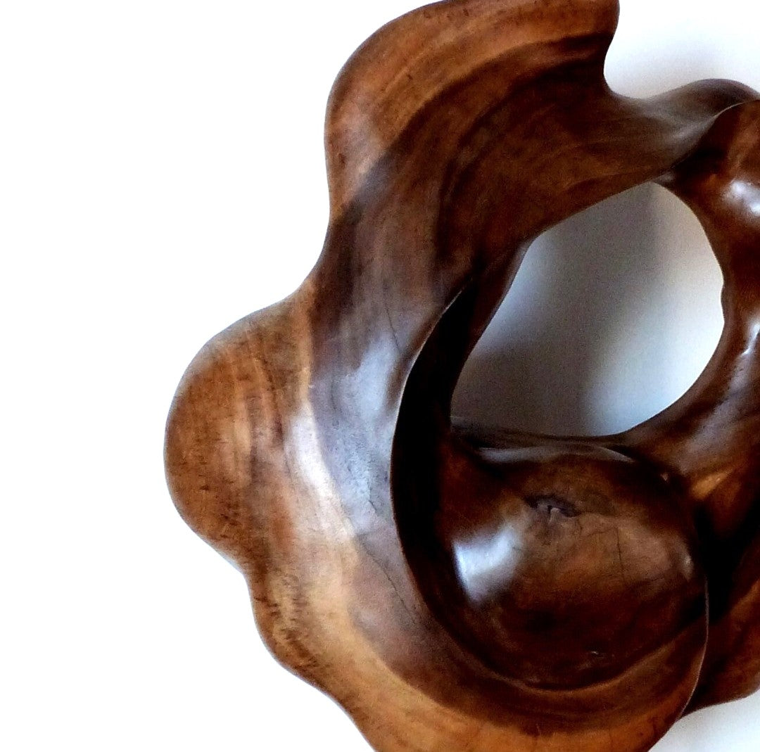 Cette sculpture incarne une esthétique intemporelle, avec des lignes fluides et des détails exquis qui racontent une histoire. Le teck, reconnu pour sa durabilité et sa chaleur, apporte une touche organique qui s'intègre harmonieusement dans tous les décors, qu'ils soient modernes ou traditionnels.