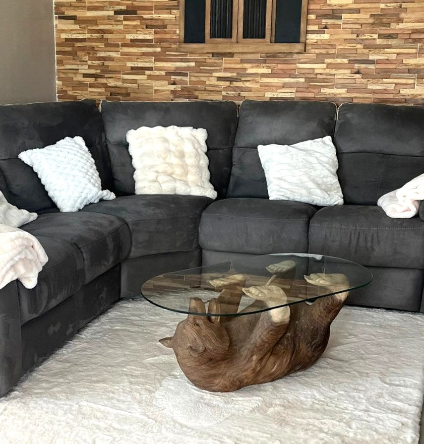 La Table Ours en Teck est une pièce unique qui combine l'élégance du bois de teck massif et le design original inspiré de la silhouette d'un ours. Chaque table est fabriquée avec soin pour offrir une robustesse exceptionnelle tout en apportant une touche de nature et d'authenticité à votre intérieur.