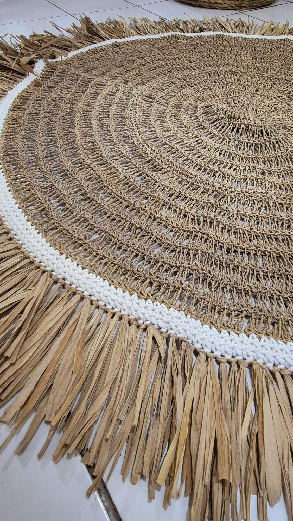 Apportez une touche naturelle et élégante à votre intérieur avec ce tapis rond en raphia, un matériau écologique et durable. Ce tapis est idéal pour ajouter une ambiance chaleureuse et authentique dans votre salon, chambre, ou même dans une entrée. Son design simple et intemporel s'intègre parfaitement dans une décoration scandinave, bohème ou minimaliste.