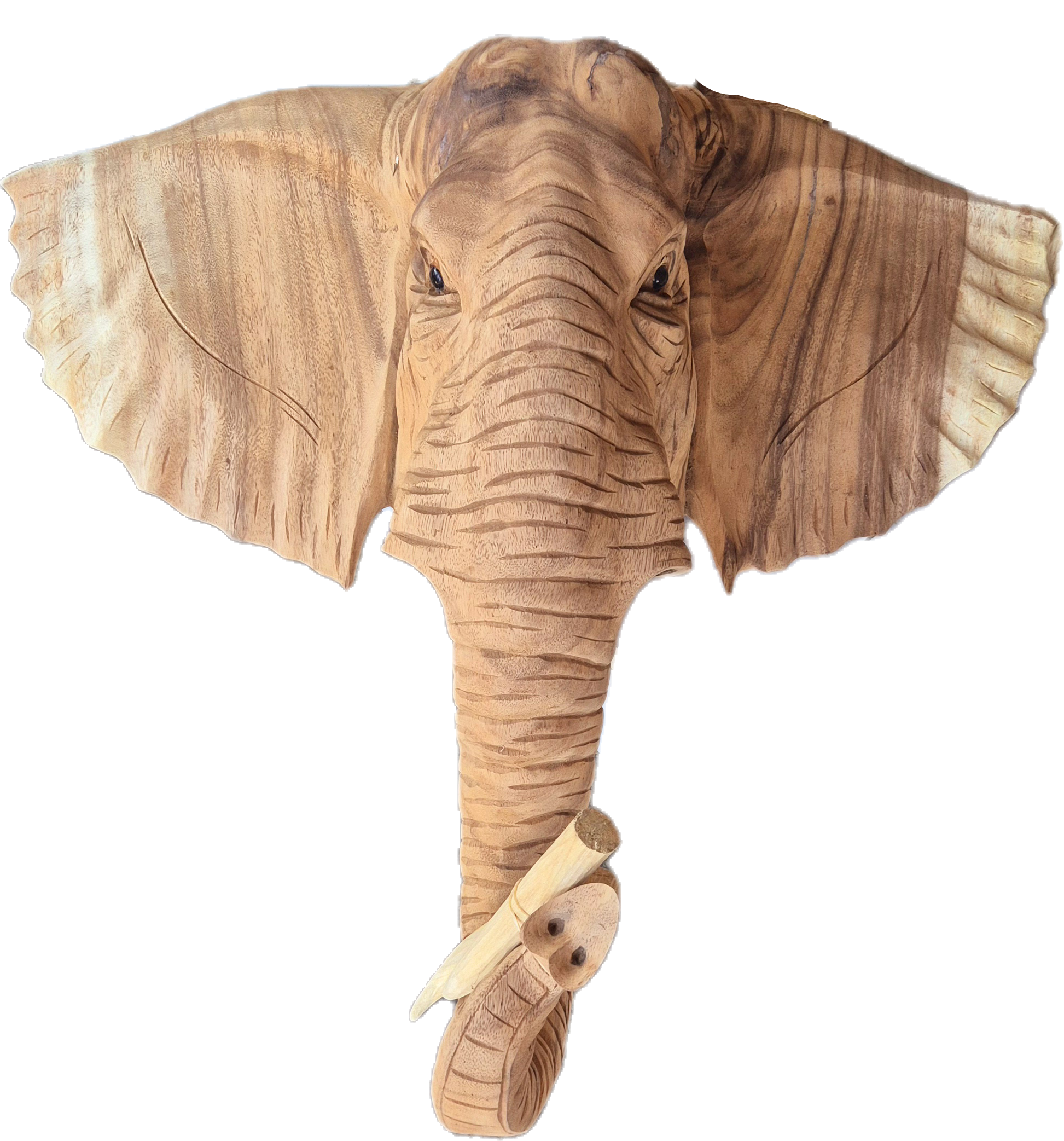 Cette magnifique tête d'éléphant sculptée à la main est réalisée en teck de qualité supérieure. Chaque détail est soigneusement travaillé pour capturer l'expression majestueuse et imposante de cet animal noble. Idéale pour apporter une touche exotique et artisanale à votre décoration intérieure, elle peut être utilisée comme objet décoratif ou pièce maîtresse dans un salon, une salle à manger ou même dans un bureau.