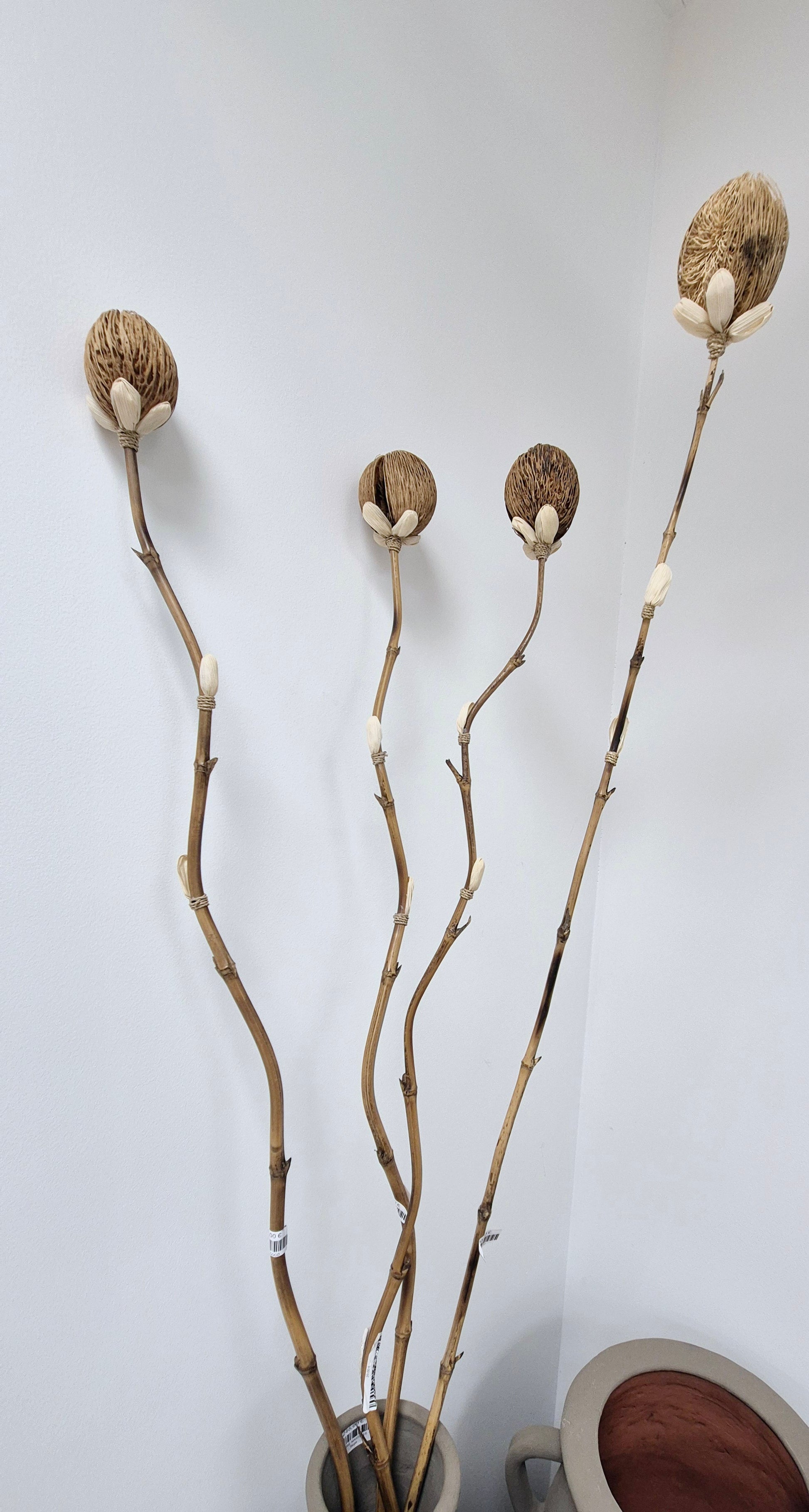 Cette tige en bambou ornée d'une noix de coco au bout est une pièce décorative pleine de charme, fabriquée à Bali. Son design unique allie l'authenticité des matériaux naturels à l’artisanat traditionnel, apportant une touche tropicale et chaleureuse à votre intérieur.